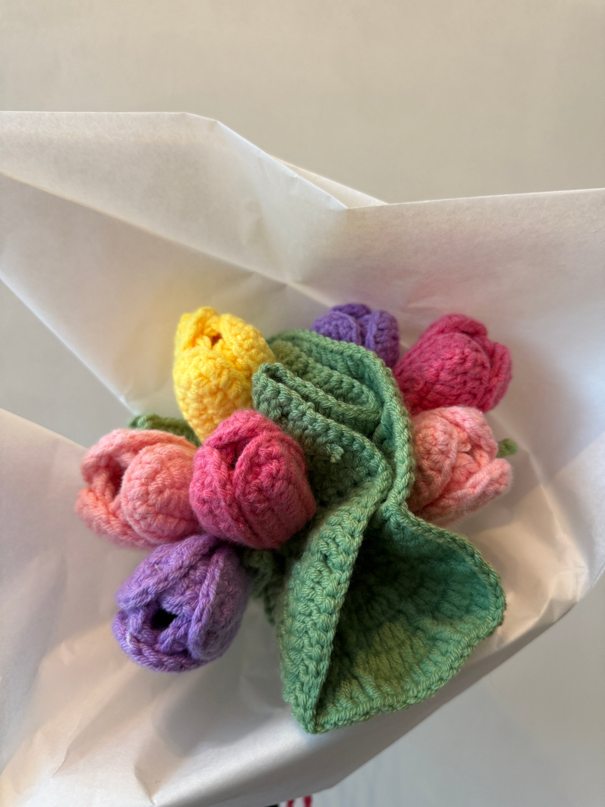 This beautifully hand-crafted crochet bouquet is part of our limited Mr Mittens collection, created with care, time, and meticulous attention to detail. Each flower is individually crocheted by hand, resulting in a tactile, lasting alternative to a fresh bouquet—one that can be cherished forever.