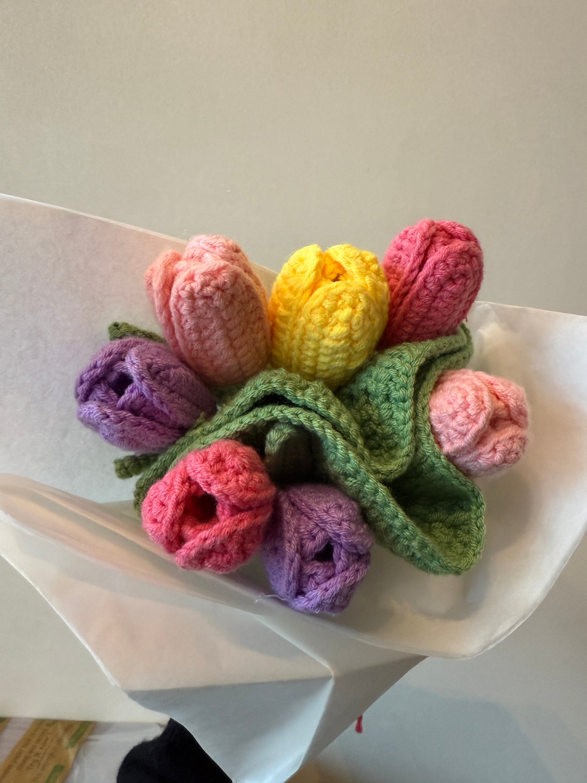 This beautifully hand-crafted crochet bouquet is part of our limited Mr Mittens collection, created with care, time, and meticulous attention to detail. Each flower is individually crocheted by hand, resulting in a tactile, lasting alternative to a fresh bouquet—one that can be cherished forever.
