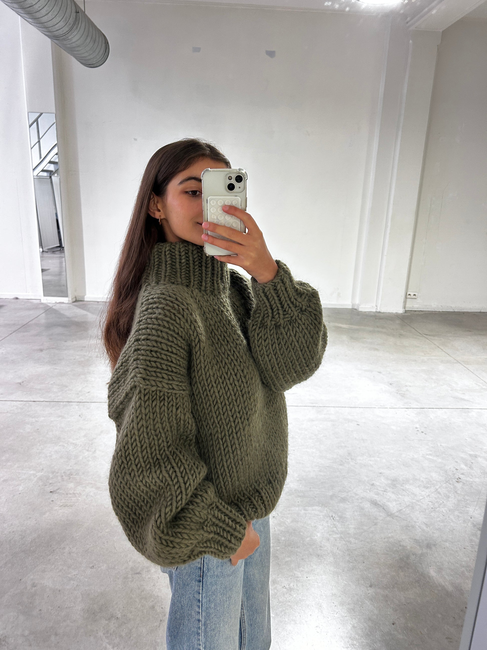With its focus on warmth and comfort, this sweater offers a fit that's slightly oversized, providing a snug and stylish look.
