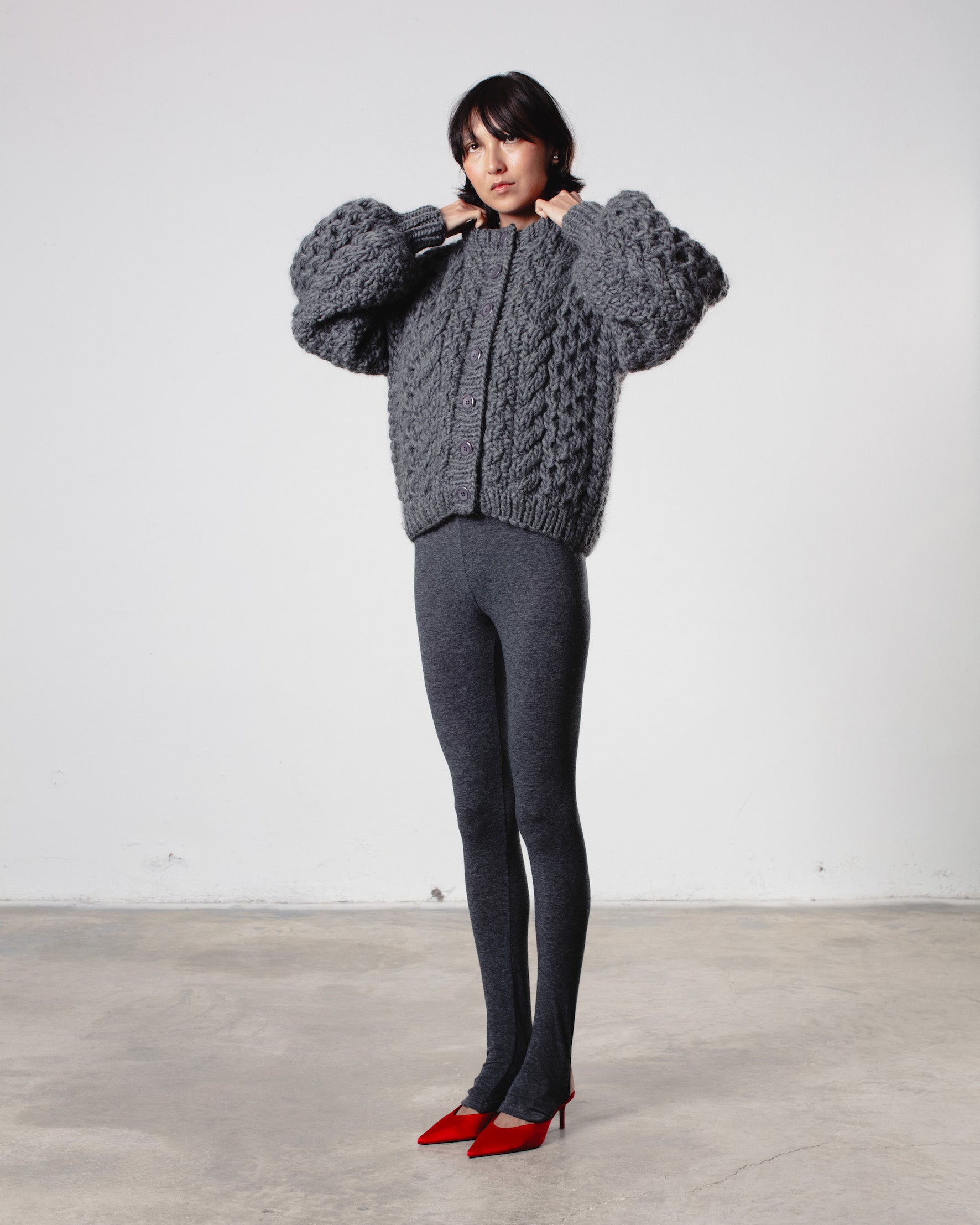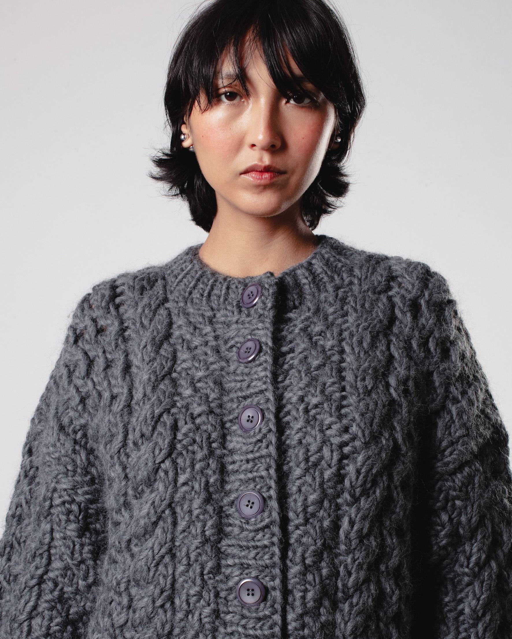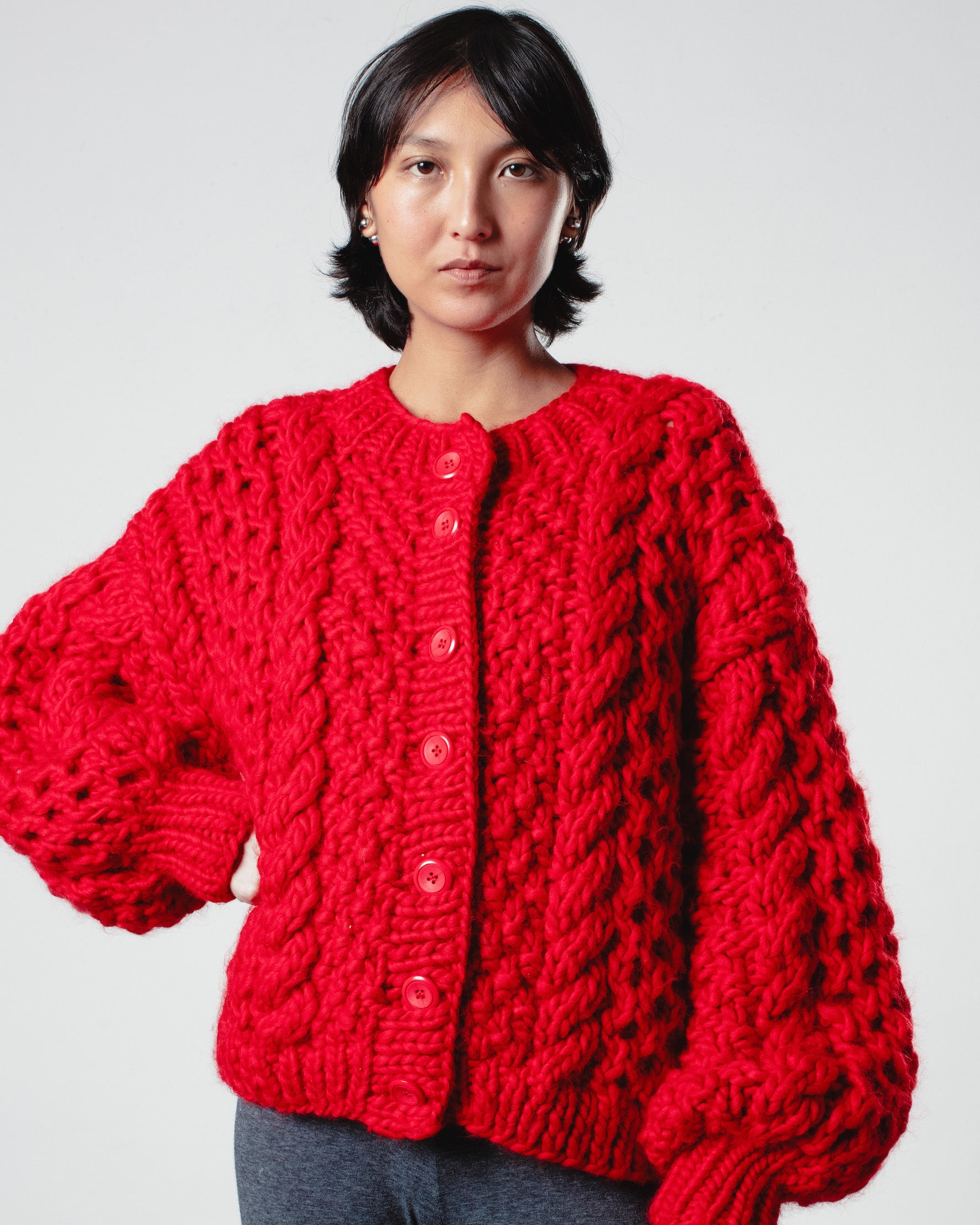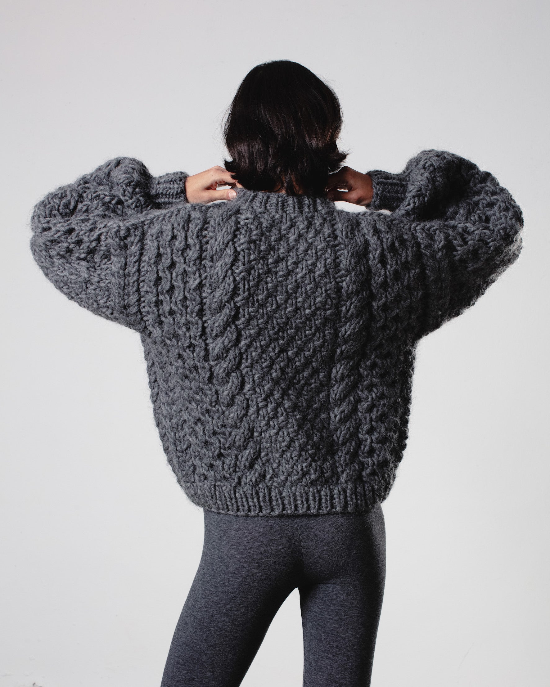 The Honey Bomber, crafted from 100% chunky wool, ensures you stay warm and stylish during the colder months. This bomber is perfect for layering over a t-shirt for a casual look or dressing up with a blouse for a more sophisticated outfit. It comes in two sizes.